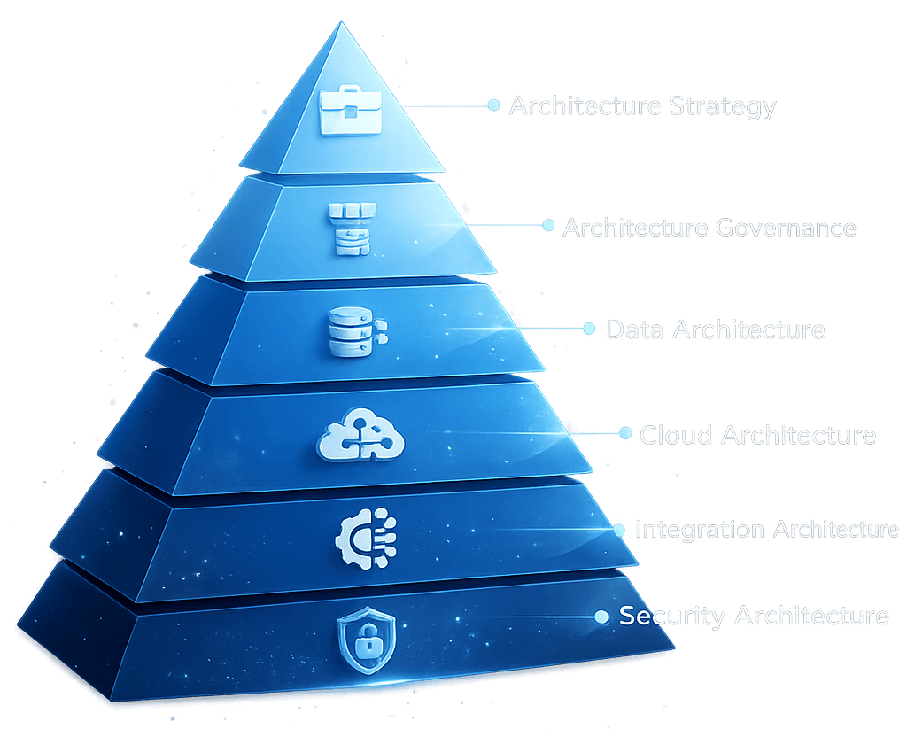 To be the trusted partner for enterprises navigating digital transformation, recognized for delivering architectures that create lasting competitive advantage and drive sustainable business growth across industries.